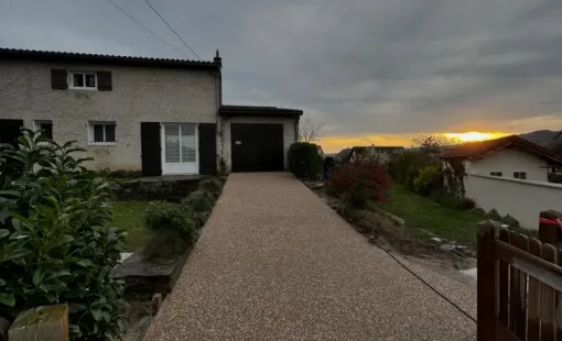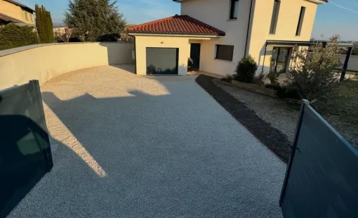 Aménagement extérieur d'une maison avec parking compris à Tartaras. Ce chantier a été mené par Hugot…